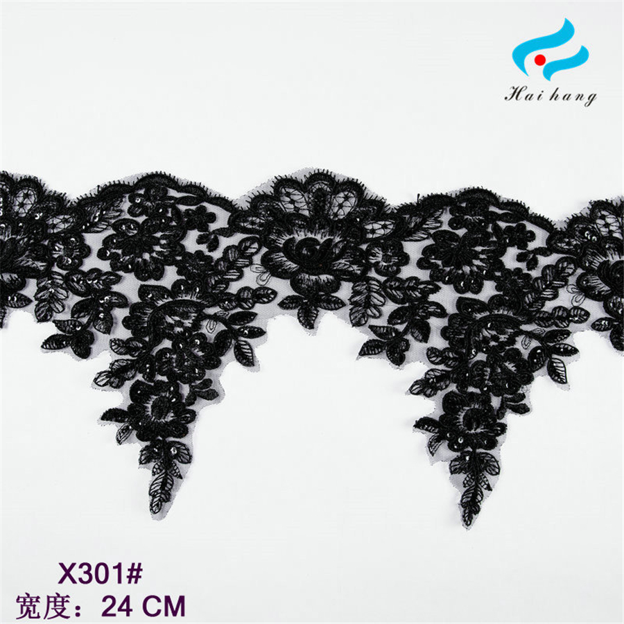 汕头厂家专业订制婚纱车骨亮片面料 骨线网纱头纱刺绣蕾丝花边